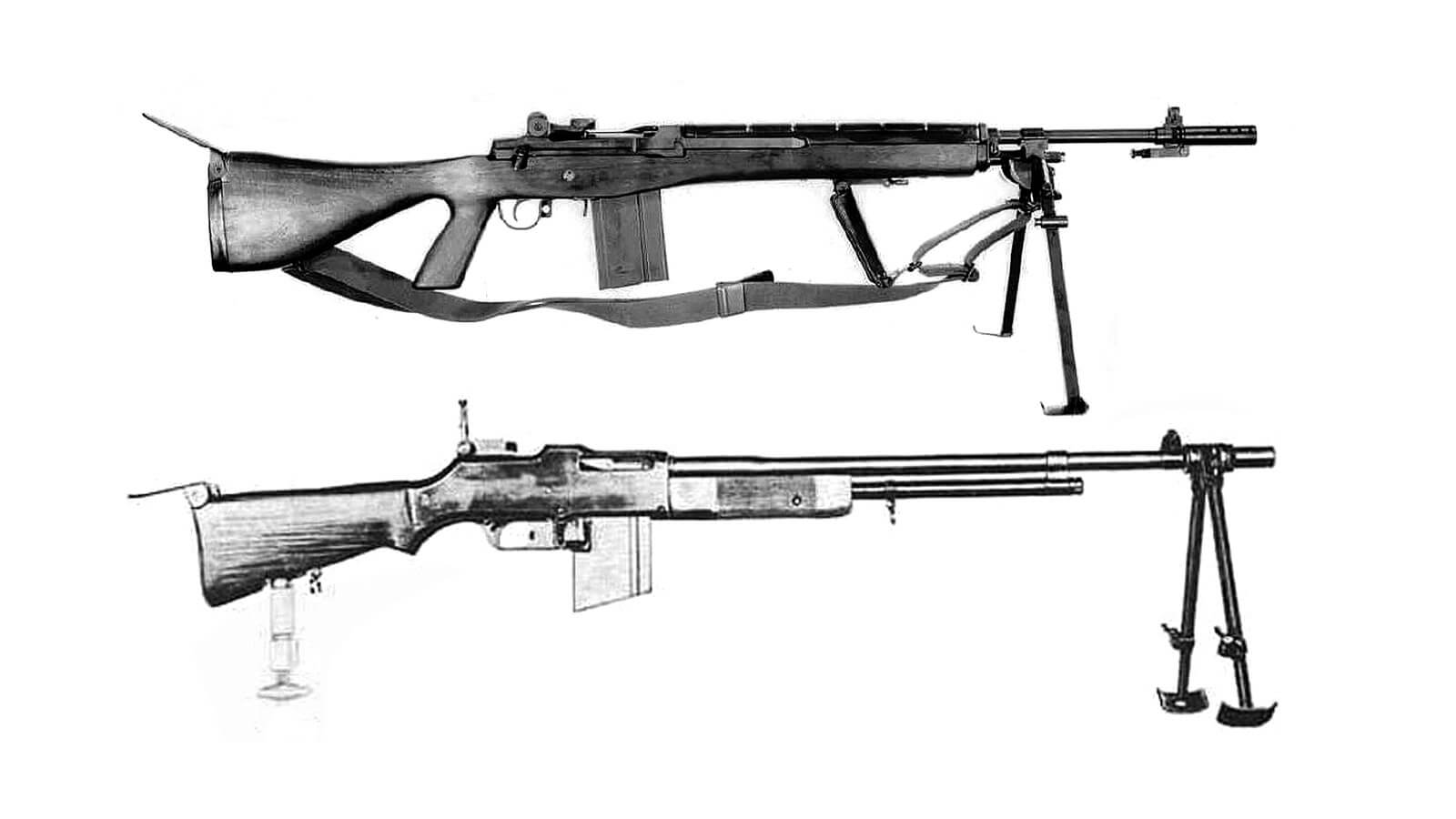 - 기관총의 경우 반동으로 견착이 흐트러지거나 장시간 조준으로 인한 피로를 방지하기 위해 어깨에 얹어서 사용하는 접철식 받침대가 있기도 하다. # M14 소총과 BAR에도 받침대가 있다. ## #