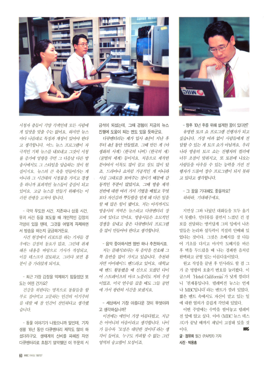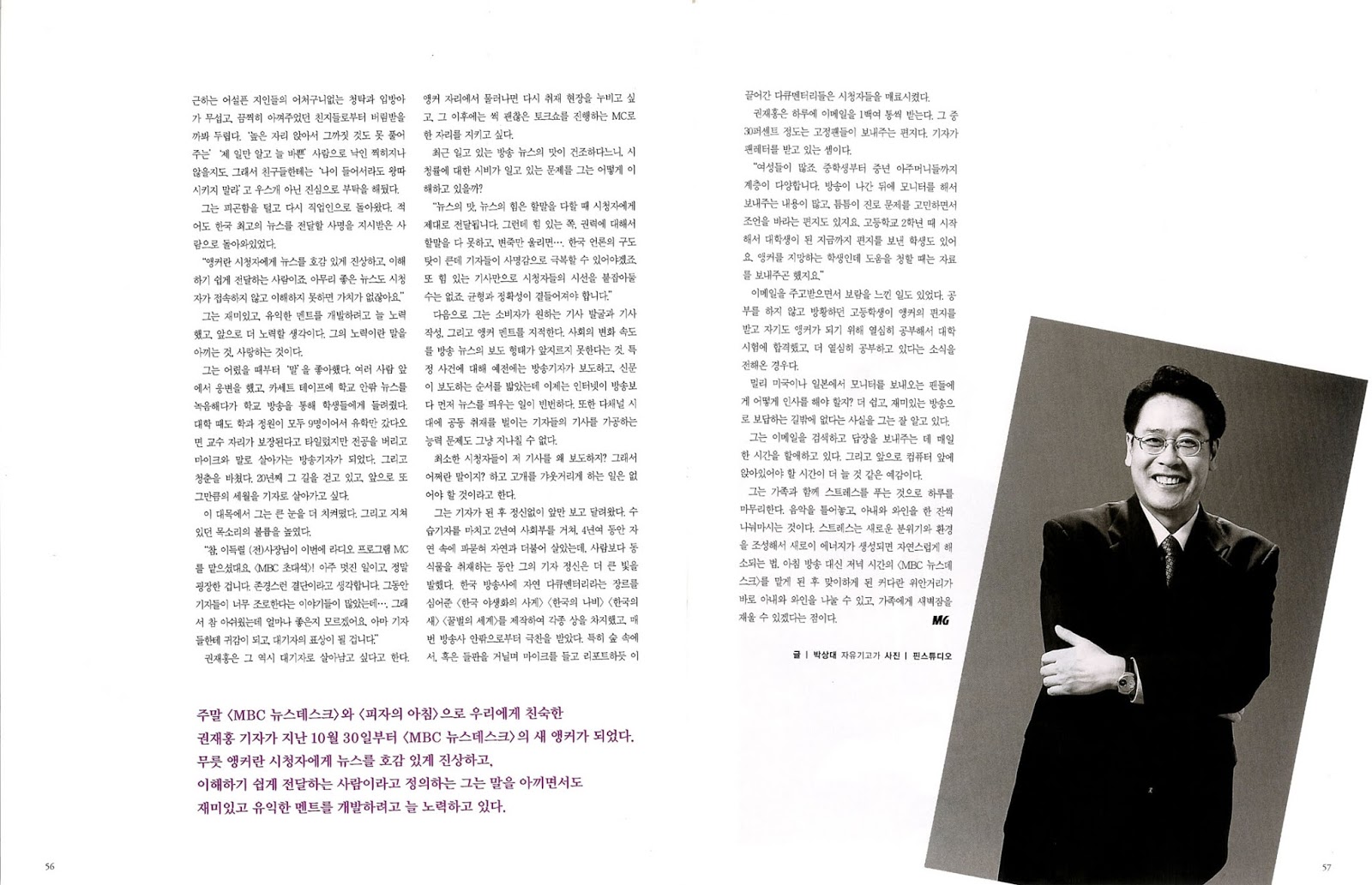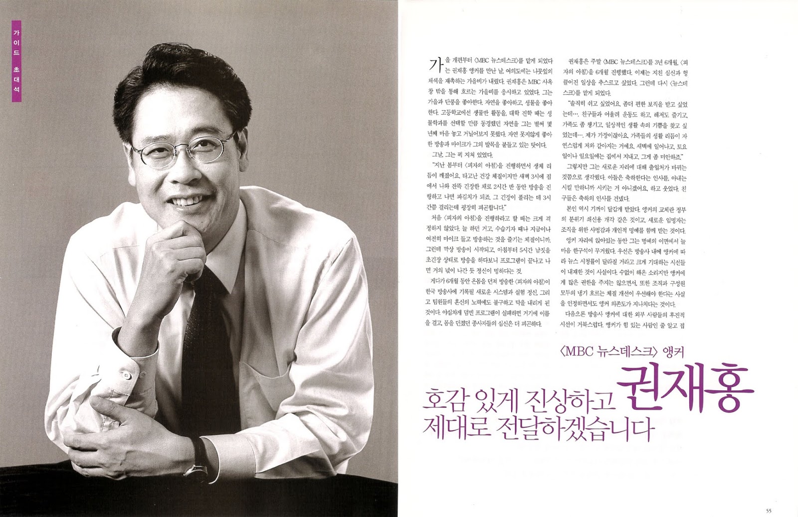 - <MBC 가이드> 2000년 11월호 '가이드 초대석: <MBC 뉴스데스크> 앵커 권재홍' p54~57.(#1, #2)