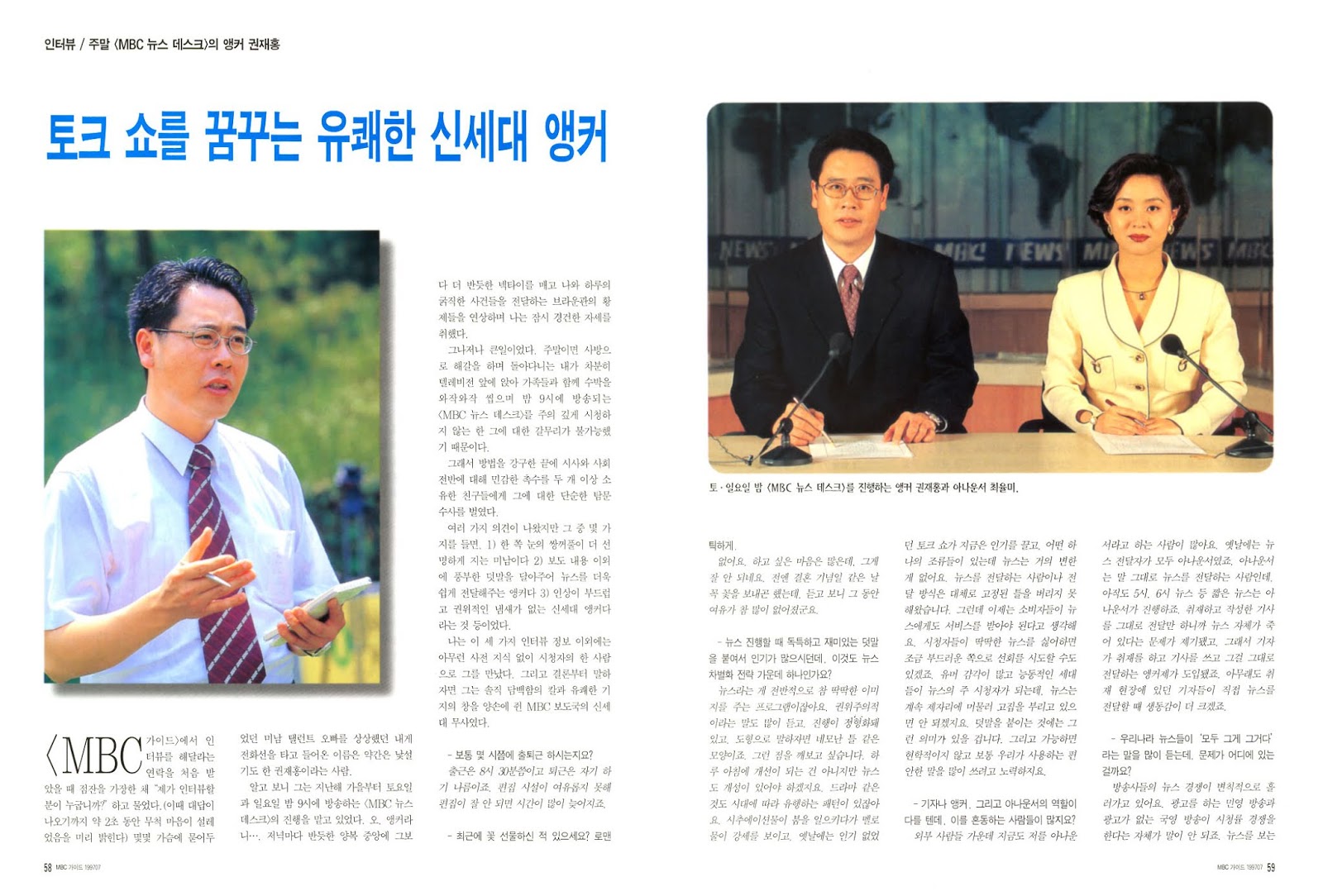 - <MBC 가이드> 1997년 7월호 인터뷰 '주말 <MBC 뉴스데스크>의 앵커 권재홍: 토크 쇼를 꿈꾸는 유쾌한 신세대 앵커' p58~60.(#1, #2)