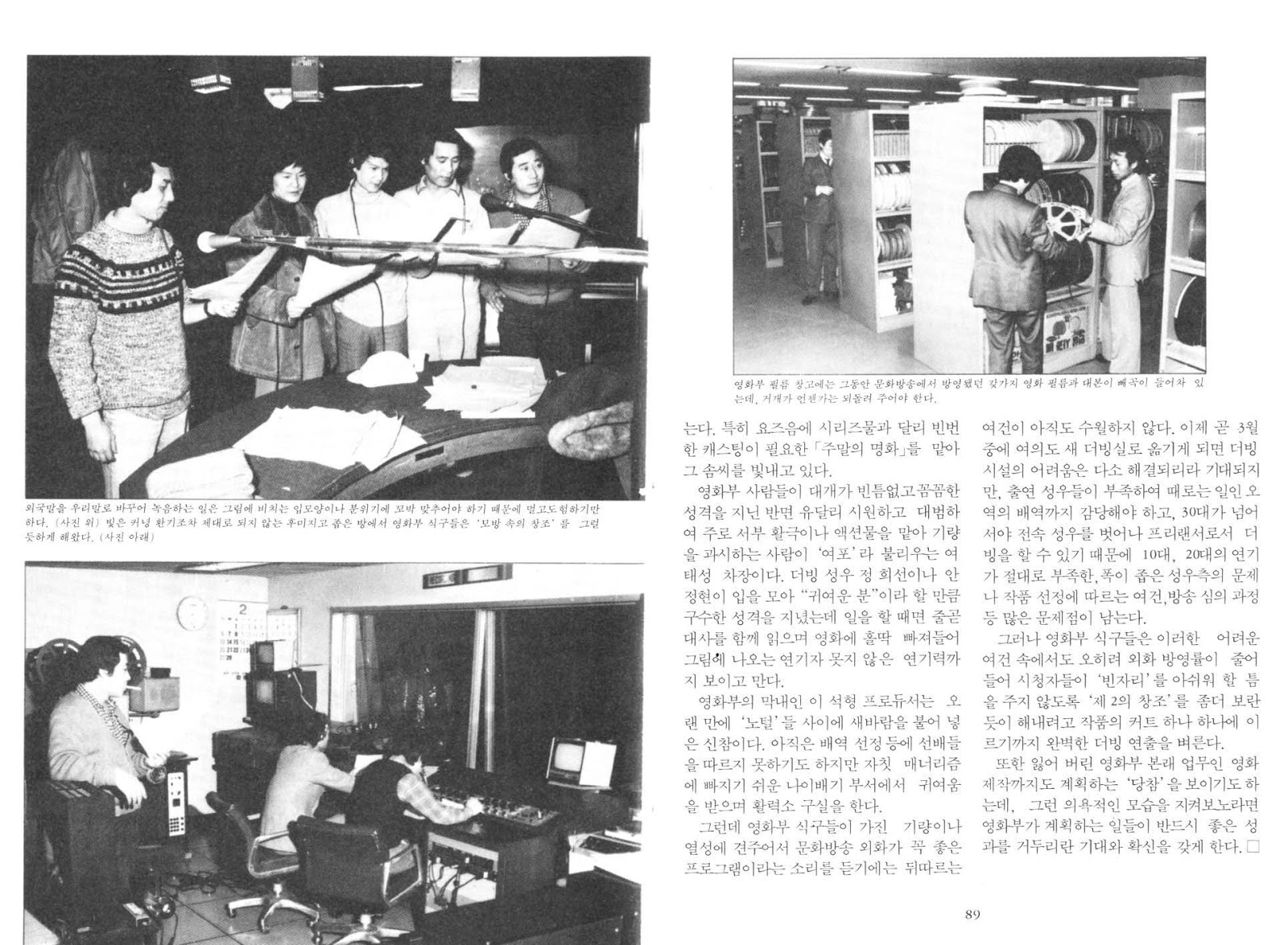 TV에서 방영하는 수입 영상물 더빙은 전통적으로 방송사가 맡는다. 다만 KBS는 1991년 국내 방송사 중 처음으로 자회사 KBS 영상사업단을 세워 그쪽으로 더빙제작 업무를 이관시켰고, MBC도 1995년 애니메이션 수입, 공급, 더빙제작 업무를 자회사 MBC프로덕션에 넘겼다가 2000년에 모기업 측이 더빙제작 업무를 다시 넘겨받았다. 1988년에 국내 최초로 독립 더빙제작사 프로덕션애드원(현 애드원 스튜디오)이 세워진 후 1990년대 중후반 이래 외주 더빙제작 사업이 점차 뿌리내리기 시작했다. 영화 더빙은 대체로 외주이다.14.1.1. 외국 영화 등 수입 영상매체