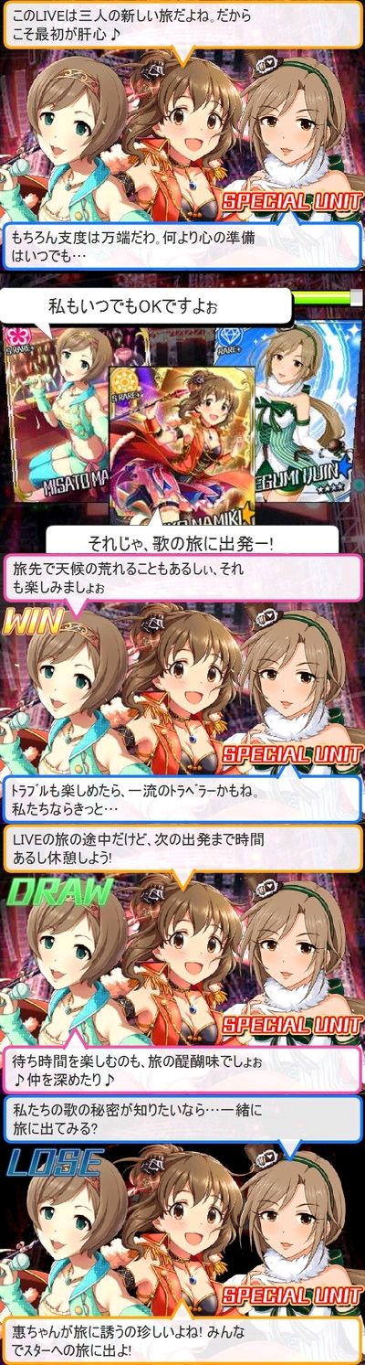 | 인사 (친애도 MAX) | ○○ 프로듀서랑, 이 곤돌라를 계속 타고 있고 싶은 걸- | |