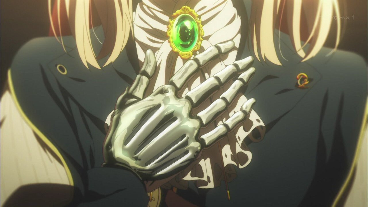 9화에서 두 팔을 잃게 된 이유가 확실히 나오는데 총탄을 맞고 쓰러진 길베르트를 호송하던 중 저격을 당해 오른팔이 날아간 것[28] 이고 왼쪽 팔은 복수하려고 던진 병사의 막대형 수류탄의 폭발로 인해 잘려나가게 된 것이다. 그 상태에서 길베르트를 어떻게든 옮기려고 했으나 길베르트의 그만두란 소리에 포기할 수 밖에 없는 현실을 받아들이며 절망하던 중 네가 살아남길 바라며 사랑한다는 말을 한 길베르트에게 사랑이 뭐냐며 울부짖으며 질문했지만 총본부를 포격시킨 적군에 의해 건물의 무너짐에 휩쓸리지만 혼자서 살아남게 된다.