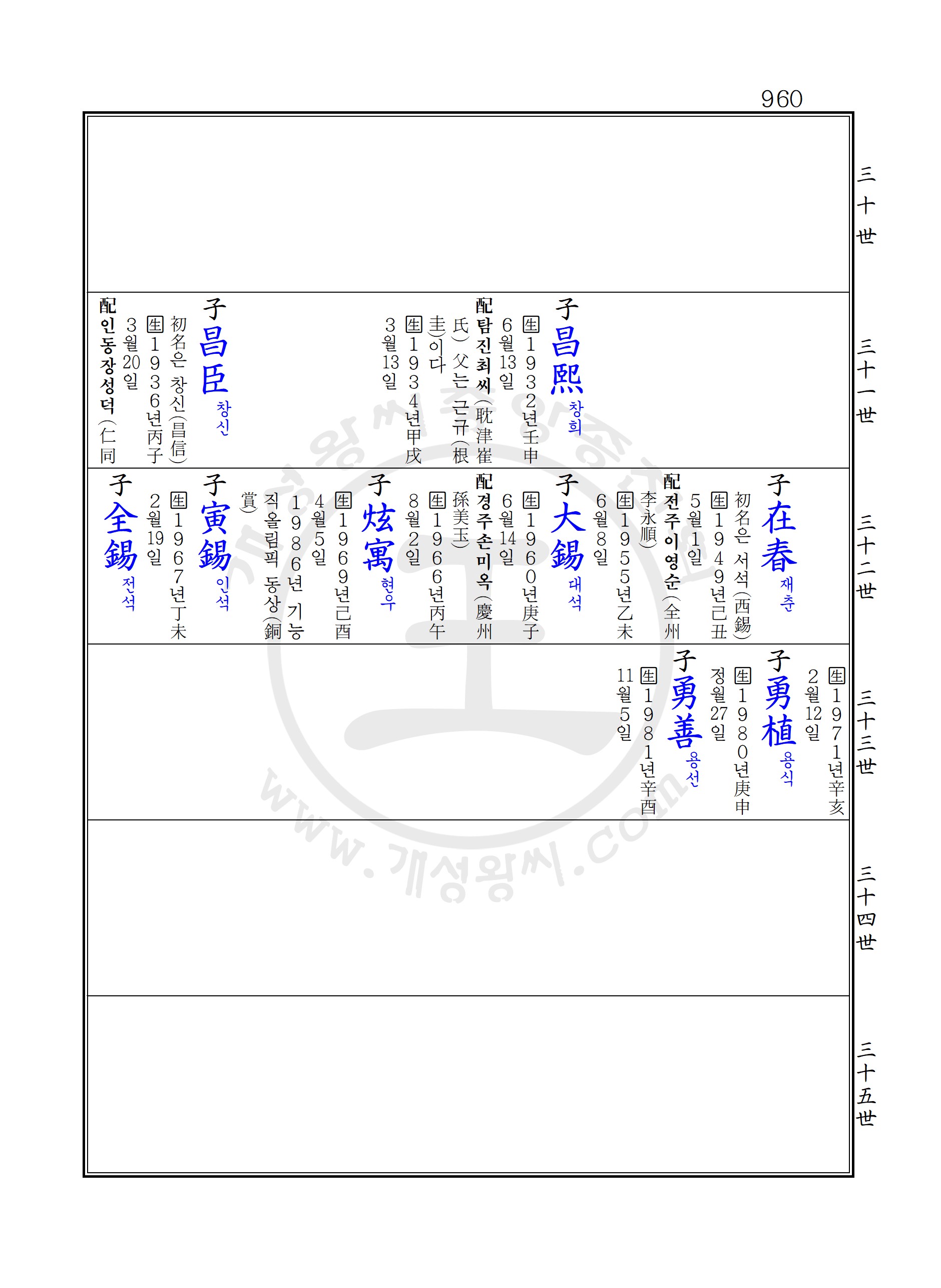 | {{{#!wiki style="margin: 0 -10px -5px; min-height: 26px" {{{#!folding [ 펼치기 · 접기 ] {{{#!wiki style="margin: -6px -1px -11px" | <colbgcolor=#003764><colcolor=#fff> 가족 | 장인 양정모 배우자 양경화(梁京華)[3] 딸 왕지원, 아들 왕준일 | |