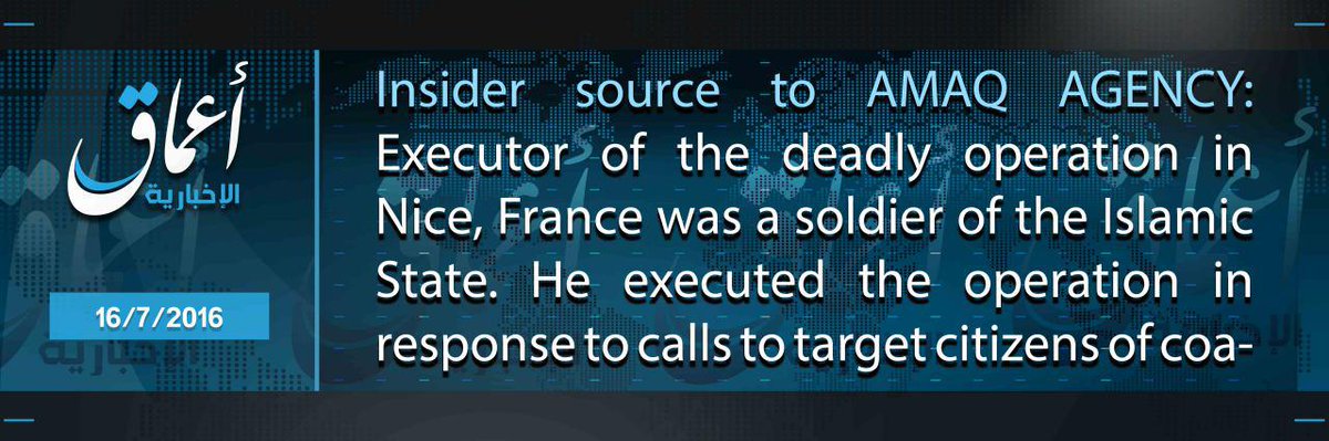 #- IS의 아마크 통신이 프랑스 니스 테러가 우리들의 소행이라는 성명을 이틀만에 내놓았다.