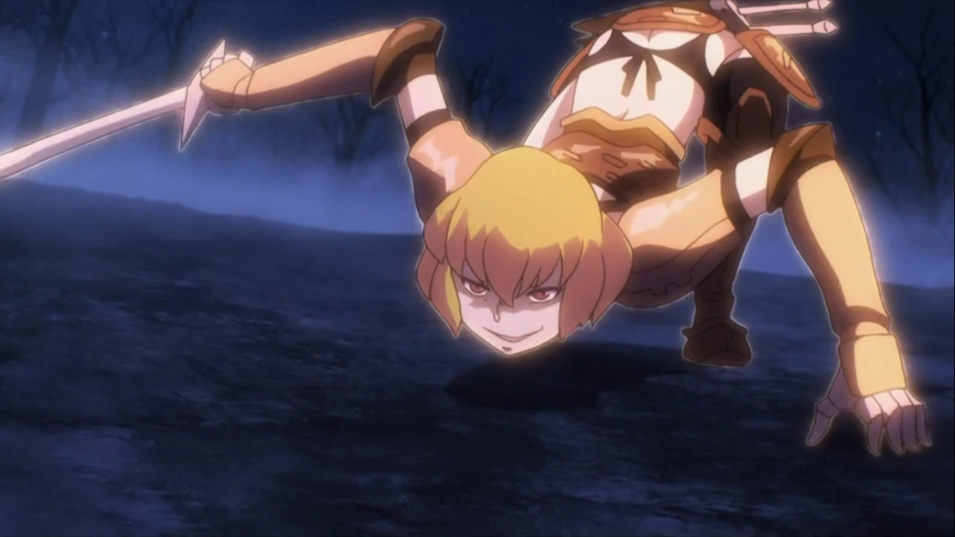 2권 '칠흑의 전사'의 주요 악역으로 줄라논의 간부인 12고제 중 한 명이자 작중 최초로 등장한 영웅의 영역에 있는 인물. 원래는 슬레인 법국의 특수부대인 칠흑성전 전(前) 9석[5]으로 당시의 이명은 질풍주파(疾風走破).[6]20세 전후의 젊은 여성[7]으로 짧은 금발과 보라빛 눈을 가진 얼굴은 단아했지만 그것은 고양이과의 야수를 연상케 하는 아름다움이라 귀엽기는 하지만 순식간에 육식짐승의 얼굴을 드러낼 것 같은 위험함이 어려 있다.