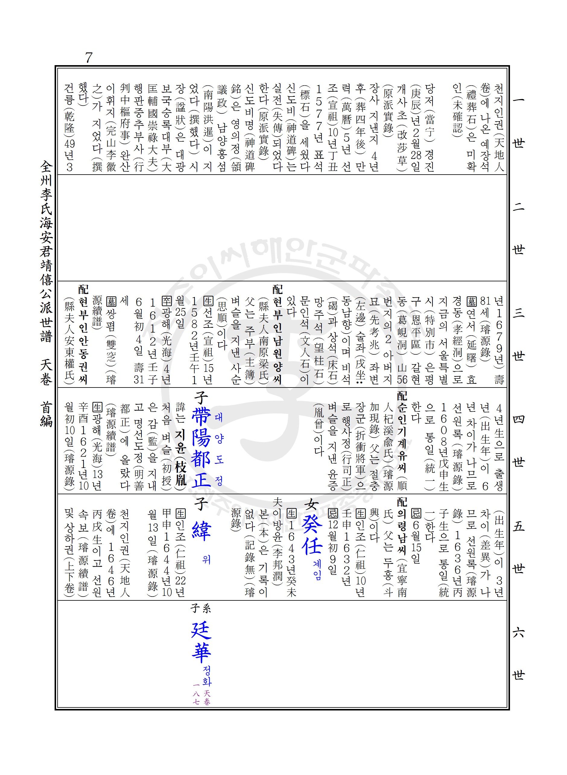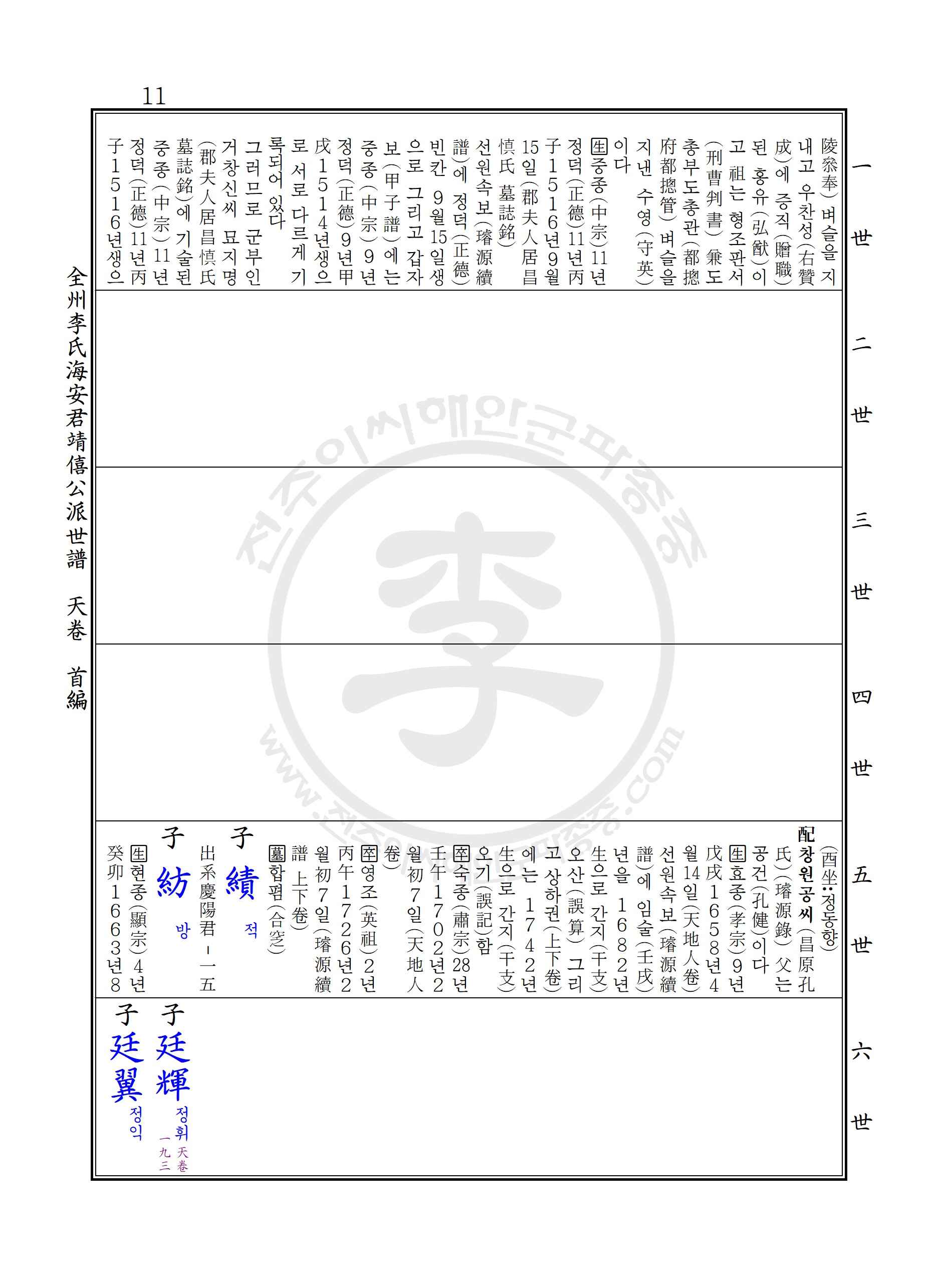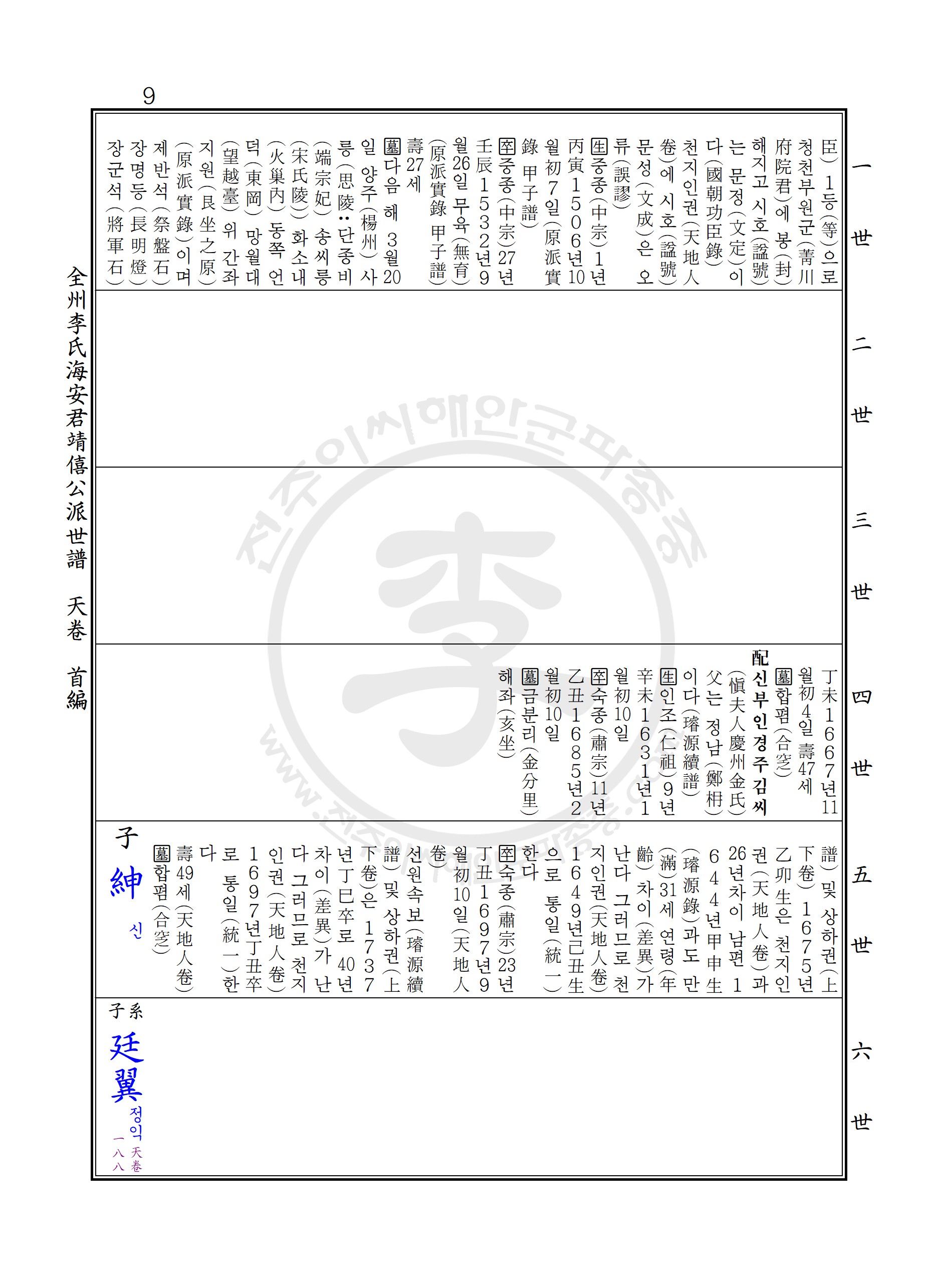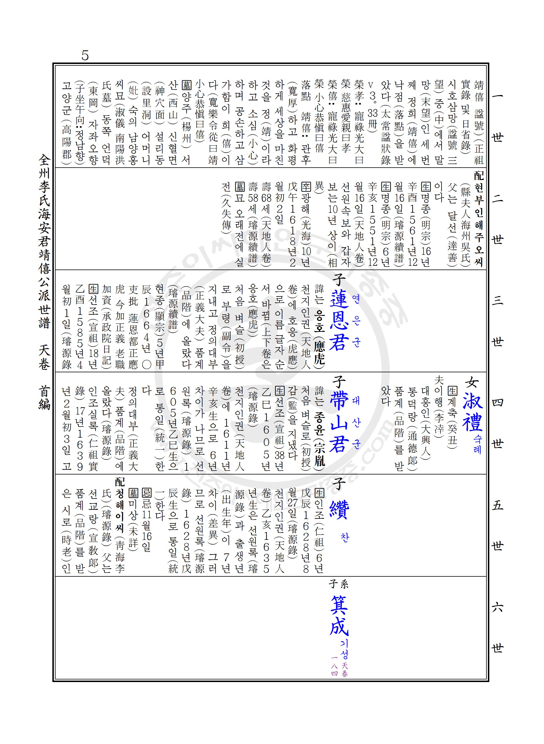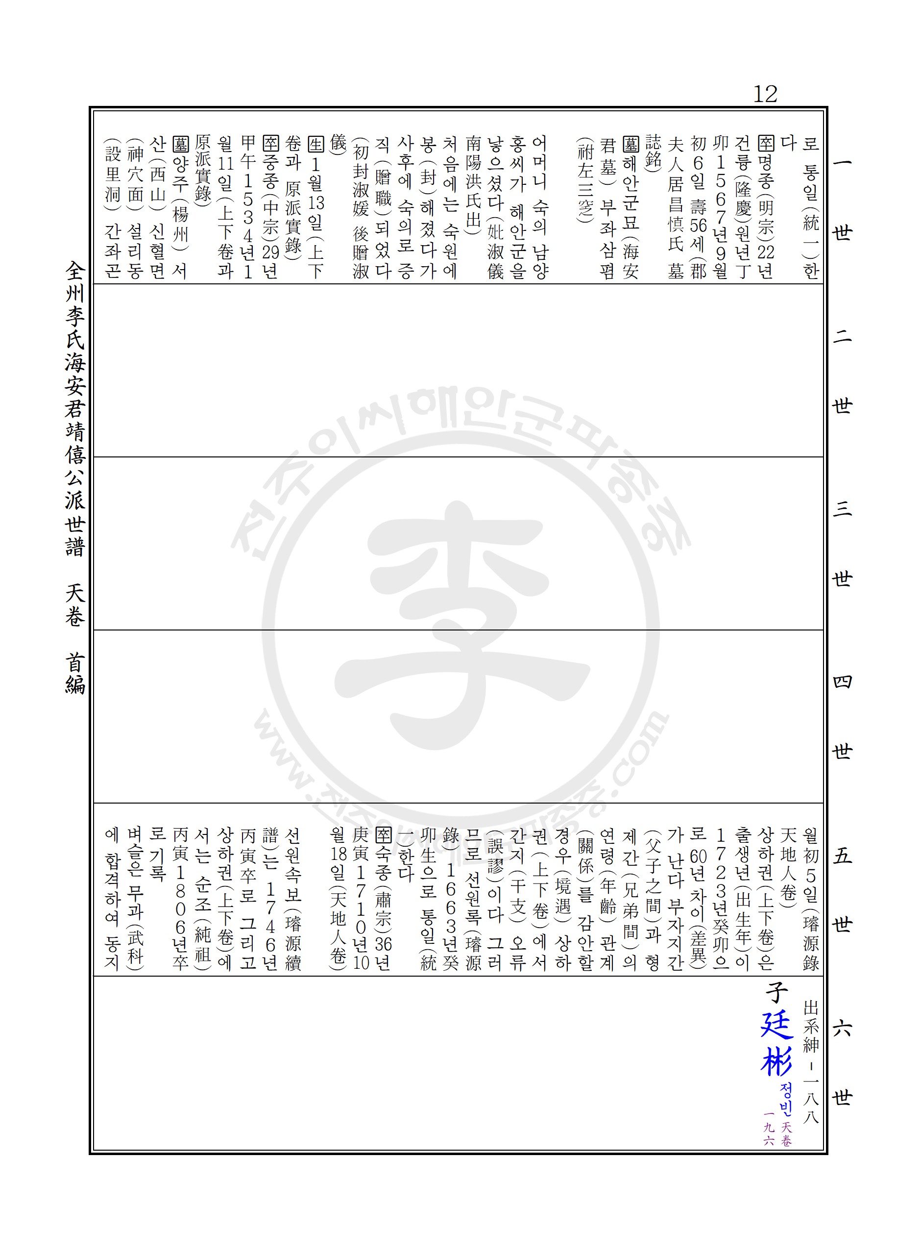 | 해안군파 역사 시작 | → | 1대 해안군 이희 | → | 2대 서릉군 이섬 | ||