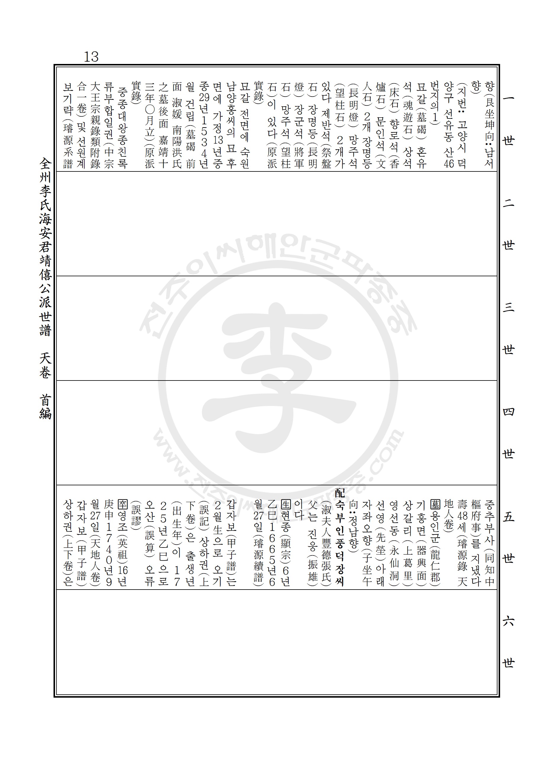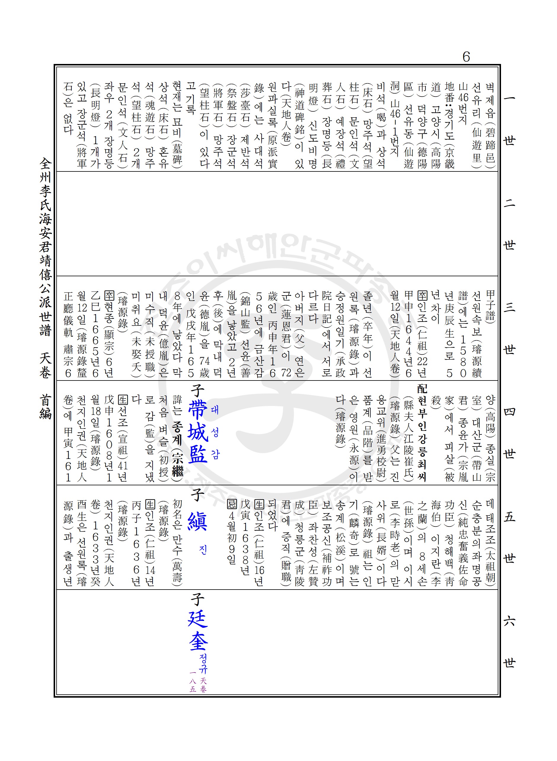 한국학중앙연구원 사이트에서 선원속보 열람할 수 있게끔 사이트를 열어놓았는데, 해안군파 족보는 누락되어 있다. 다만 장서각에서는 해안군파 선원속보가 PDF파일로 올려져 있으나 1권이 누락된채로 2권과 3권만 업로드된 상태이다.#[13]7. 둘러보기