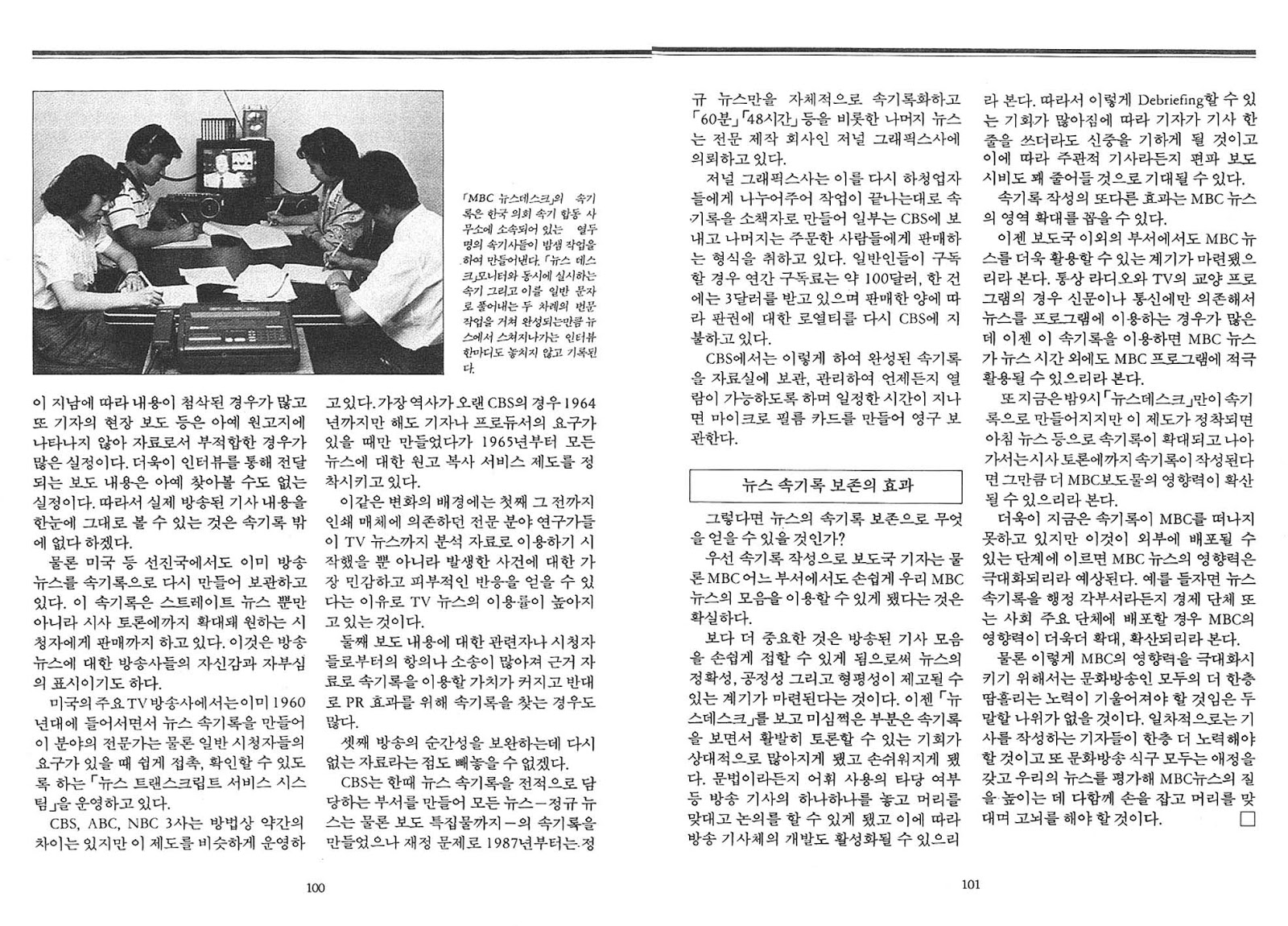 [1] 뉴스룸이라는 영어 단어 자체가 방송사의 보도국, 신문사의 편집국을 의미한다.[2] 주중 스트레이트 뉴스에만 적용되고 종합뉴스에는 적용되지 않는다.[3] 이 슬로건은 김장겸 당시 사장의 취임사에서 따 왔지만, 하필 방송 시기가 박근혜-최순실 게이트, 2017년 공영방송 총파업과 겹쳤던 터라 진보 측에서 비난의 시각으로 보았다.[4] 1968년 폐지.[5] <MBC 가이드> 1989년 6월호에서도 다뤄졌다.(#1, #2)[6] 자세한 내용은 <MBC 가이드> 1992년 2월호 기사 참고.(#1, #2, #3, #4, #5)[7] 출처: <문화방송 연감 '95> p155~156.[8] 출처: <문화방송 연감 '96> p207~210.[9] 2013년 유튜브 채널 오픈 초기에 잠깐 뉴스데스크만 시범으로 실시간 스트리밍을 한 적이 있었다. 그러고서 풀영상 업로드 형태로만 유튜브 채널을 운영해오다 4년만에 정식 서비스화된 것이다.[10] 사실, 여기에는 볼드체가 아니라 MBC 로고가 들어간다.[11] 단, 기상캐스터 자막은 제외.[12] 파트는 직제 외 조직이다.[13] 이하 출처: <문화방송 삼십년사(1992)> p356, 825~826.[14] 2007년 3~4월에 쓴 스튜디오는 당시 뉴스투데이 스튜디오다. 기존 스튜디오 리뉴얼하면서 임시로 진행한 듯.[출처] Work01[16] 원조는 BBC이다. BBC도 도입 당시는 꽤 혁명적이라고 자사 뉴스 꼭지에서 선전했고, MBC는 BBC에서 선보인 방식 그대로 적용했다.[17] 뉴스데스크는 2월 25~28일에 하노이 현지, 3월 1일에는 서대문형무소에서 야외 진행을 했기 때문에 해당 사항이 없다.[18] 정작 바꾼 바닥은 첫 날 진행에서만 데스크에서 왔다갔다 한 번 하고 쓰는 일이 거의 없다.[19] 레일카메라가 비디오월에 가까이 가면 그 구조물도 살짝 이동한다.[20] 기존 A스튜디오 구조와 비교해보면 기존 구조에 큰 LED 스크린 세 개에 이동식 스크린을 설치하였다는 것을 알 수 있다.[21] 증강현실에서 업그레이드된 확장현실(XR)을 도입했다.[22] 여기서 XR(확장현실)을 구현한다.[23] 2025년 1월 18일 전지적 참견 시점에서 자세히 밝혀지게 되는 부분인데 무인 카메라는 모두 부조정실에서 원격으로 조작한다.[24] 다만 뉴스데스크의 알고 보니와 같은 일부 코너도 이 스튜디오에서 진행한다.[25] 강재형 아나운서는 1987년 MBC에 입사한 대선배다.[26] 토요일 뉴스투데이는 방송시간이 짧아 날씨 직후 바로 클로징멘트가 나오는데, 이후 스튜디오 전면샷을 비추며 끝난다. 이 때 비디오 월에서 내려오는 오요안나 캐스터와 강재형 앵커가 만담을 주고받는 듯 한 장면이 항상 보인다.[27] 스포츠 매거진을 진행하는 스튜디오가 바로 이것이다.[28] 이 기간 스포츠 매거진은 결방됐었다.[29] 즉, 어버이날부터 6월 25일까지는 MBC의 모든 뉴스 프로그램은 B스튜디오에서 진행하는 셈이다.[30] 오프닝은 2025년 7월 7일 부분적 디자인 개편과 함께 변경되었다.[31] 메인 스테이지는 일산 드림센터 공개홀이 쓰인다. 예외로 2017년엔 파업이 끝난 직후 급하게 연말 프로그램들이 기획, 제작된 영향으로 일산 드림센터에서만 진행되어 사용하지 않았다.[32] 이 특징으로 인해 김장겸 체제에 항의하던 MBC 총파업때 보도국에 붙여진 '김장겸 뉴스제작·김장겸 체제 업무를 중단한다!' 라는 피켓이 뒷 배경으로 나온 적이 있었다(!).[33] 이 스튜디오는 두 대의 카메라만 쓰인다, 한 대는 앵커, 나머지는 클로징 전용 카메라기 때문에 파업시 적은 인력으로도 제작할 수 있다.[34] 뉴스데스크, 뉴스투데이, 뉴스외전[35] 일요일 아침뉴스 제외.[36] 정다희 아나운서가 언급한 B스튜디오의 비디오월에 대한 이야기를 들은 사람은 알겠지만 손을 대면 안될 정도로 민감하다는데 그것 때문이 확실해 보인다.[37] KBS의 경우에는 2013년 가을 개편과 함께 보도국 스튜디오에 촬영하던 모든 뉴스 프로그램을 리모델링이 끝난 1TV 메인 스튜디오(NS-1)로 이전시켰고, SBS 역시 목동 사옥 초창기에 보도국을 활용에서 만든 데스크가 360도 회전하던 기존 스튜디오를 2011년 10월 22일까지 사용했으며, 사무공간 한가운데에 자리잡은 (舊) 크로마키 전용 제2 스튜디오에서 촬영하던 단신뉴스도 모두 다 스튜디오 4로 이전했다.[38] JTBC가 오픈 스튜디오를 부활시켰다가 부정적인 평가만 받고 다시 오픈 스튜디오를 중단하게 된 이유도 이것 때문이다. 아직 오픈 스튜디오를 유지하는 또 다른 방송국인 연합뉴스TV 또한 최소한의 유리창만 설치함으로써 오픈 스튜디오여도 아주 최소한의 크기로만 보도국이 보여지기 때문에 산만함이 적은 편이다.[39] 뉴스 스튜디오들이 모두 7층에 자리잡고 있기 때문에 역시 방역 대상에 포함된다.[40] 가끔 제2 인터뷰룸으로 쓰이는 모습을 종종 볼 수 있다.[41] 퇴임 후 1996년 전무로 복귀.[42] 이후 OBS 사장 역임.[43] 이후 사장 취임했다가 2017년 11월에 해임되었다.[44] 2019년부터 2024년 정년퇴임 시까지 MBC 노동조합(제3노조) 위원장도 맡았다. 저서로는 <천년전쟁(2017)>, <세 번의 혁명과 이승만(2022)>이 있다.[45] 2020 도쿄 올림픽 개회식 및 중계 방송 논란의 책임을 지고 자진 사퇴하였다.[46] 이후 TBC 보도국장, 삼양식품 부사장 및 사장 역임.[47] 보도국장인 덕분에 MBC 뉴스데스크의 초대 앵커를 맡게 되었다고 한다. 영화감독 박진표의 부친이자 배우 송채환의 시부이다. 2019년 사망.[48] 이
