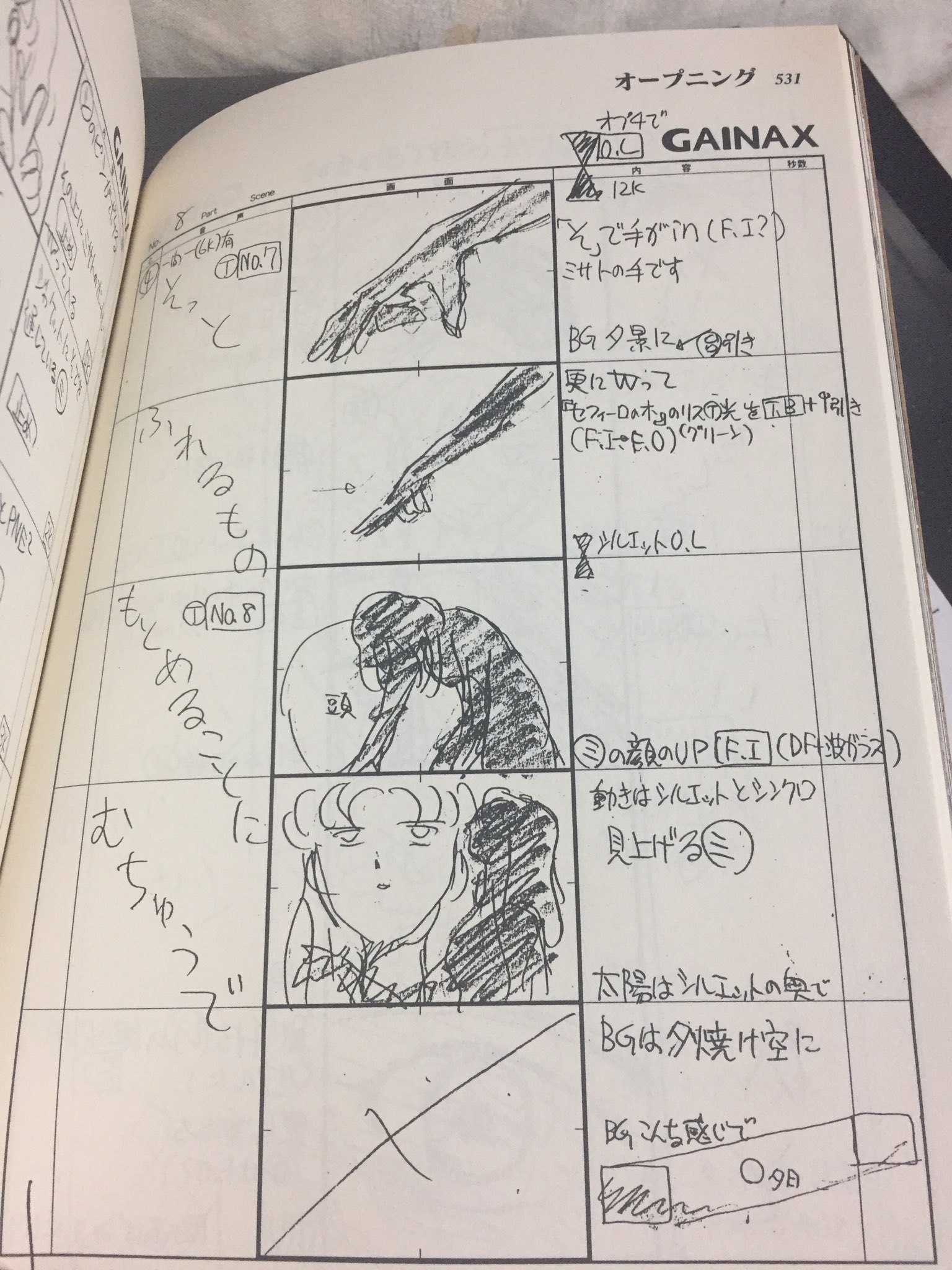 | 신세기 에반게리온 OP 연출 츠루마키 카즈야 콘티 안노 히데아키[61] 작화 하세가와 신야, 혼다 타케시[62] |