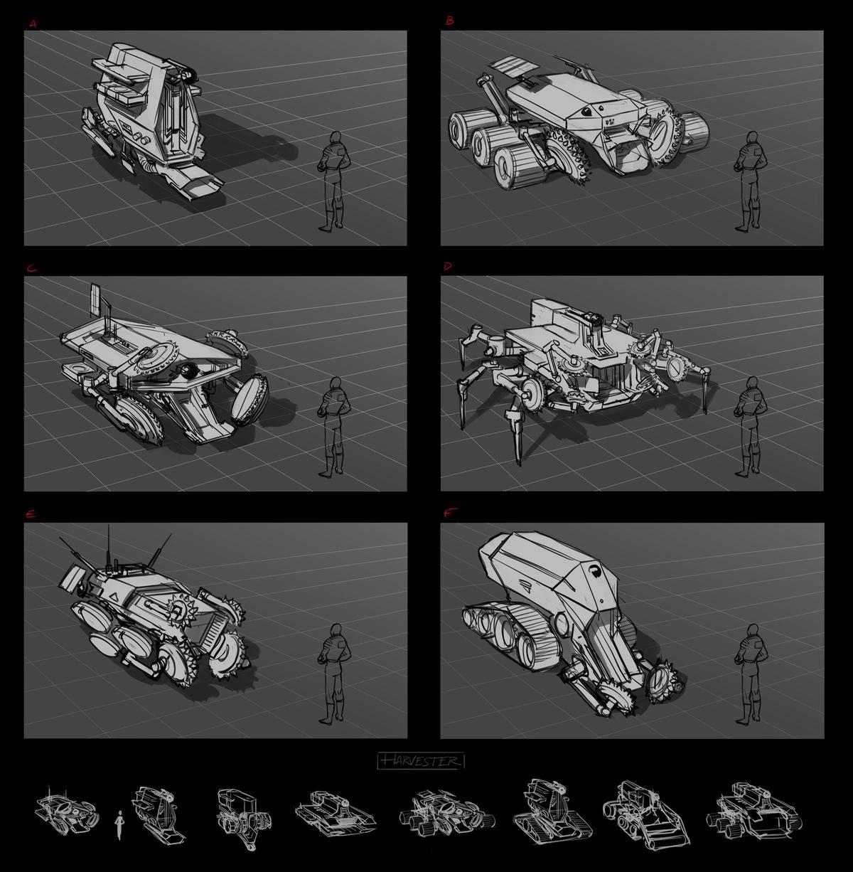 여담으로 원래는 제작 당시에는 두 가지 컨셉으로 제작되는 중이었다. 전자는 대형 차량 버전, 후자는 일반 오퍼레이터에 방패를 단 버전인데 전자의 경우 내부 활동에 지장이 될 정도의 사이즈인지라 묻혔고, 후자의 경우 중장비로써의 이미지와 맞지 않아서 탈락한 것으로 보인다.